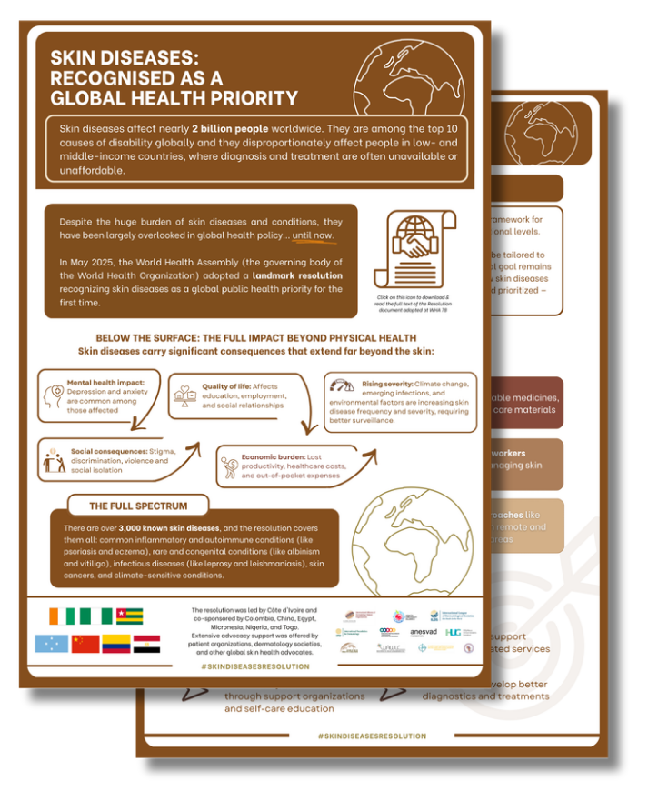 The World Health Assembly Resolution on “Skin diseases as a global public health priority” was adopted in May 2025.